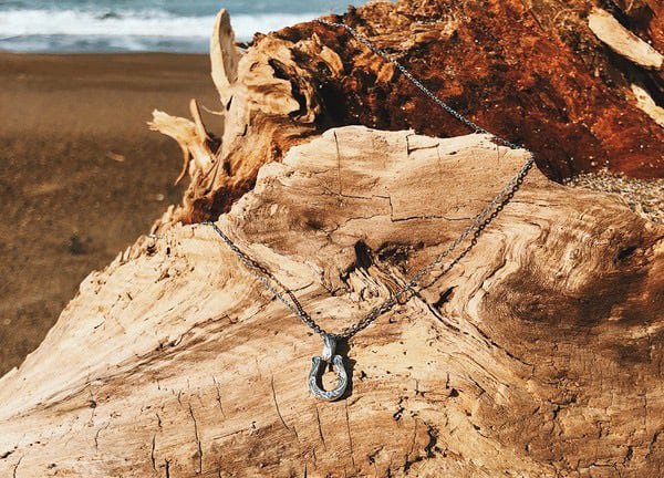 そんなホースシューの幸運のお守りに、海から幸せを運んでくれる波の刻印「スクロール」を施したネックレス。