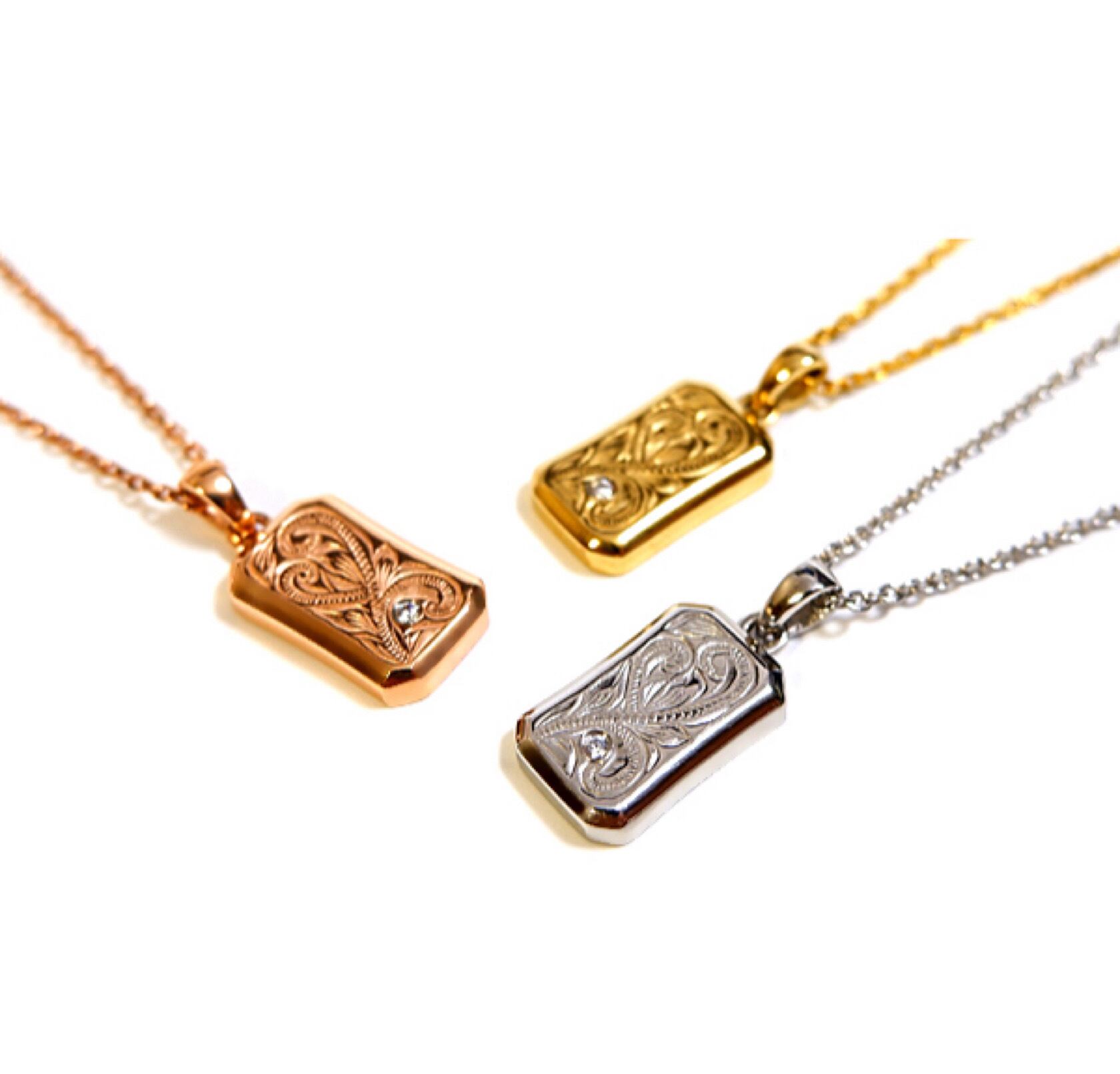 「一粒のジルコニアが輝くドッグタグネックレス」